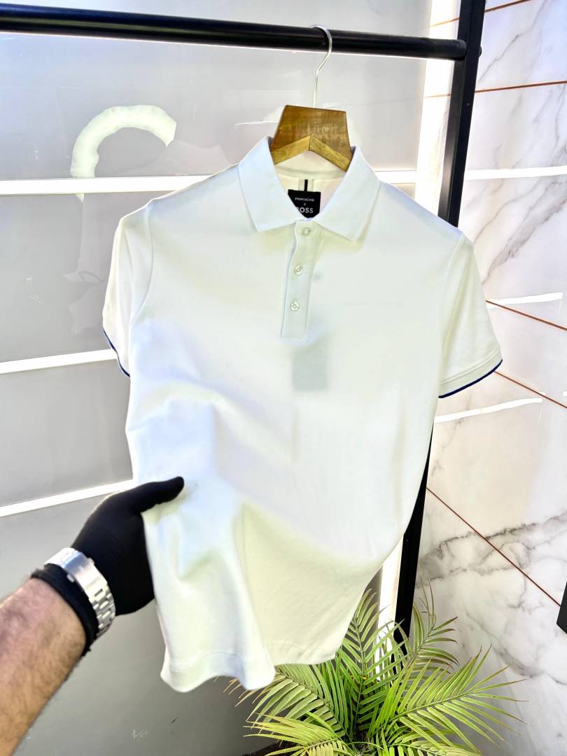 Boss x Porsche Edition White Collar Neck Premium Polo T-shirt F1829-WH